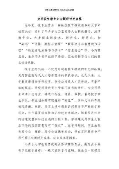 / 【七哥公文】2024年:大学设立微专业专题研讨发言稿+更多免费公文+VX:QiGeGongWen2024