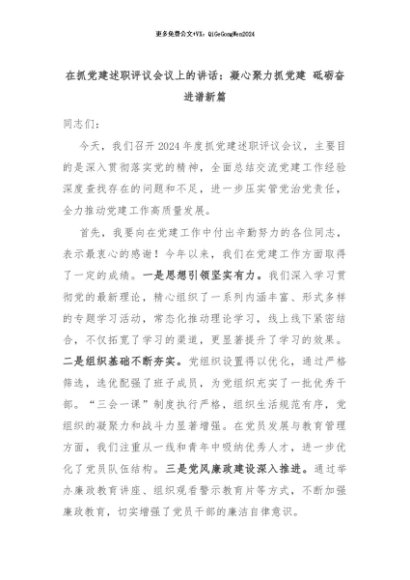 【七哥公文】2024年:在抓党建述职评议会议上的讲话:凝心聚力抓党建 砥砺奋进谱新篇+更多免费公文+VX:QiGeGongWen2024