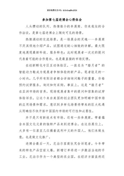 【七哥公文】2024年:参加第七届进博会心得体会+更多免费公文+VX:QiGeGongWen2024
