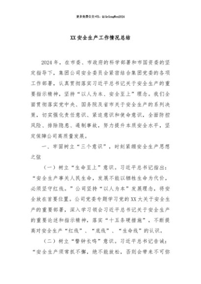 / 【七哥公文】2024年:XX安全生产工作情况总结+更多免费公文+VX:QiGeGongWen2024