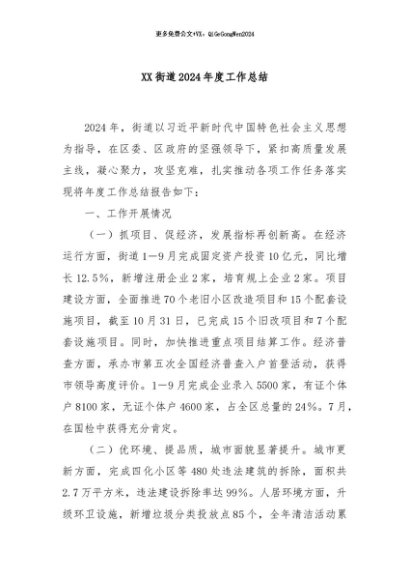/ 【七哥公文】2024年:XX街道2024年度工作总结+更多免费公文+VX:QiGeGongWen2024