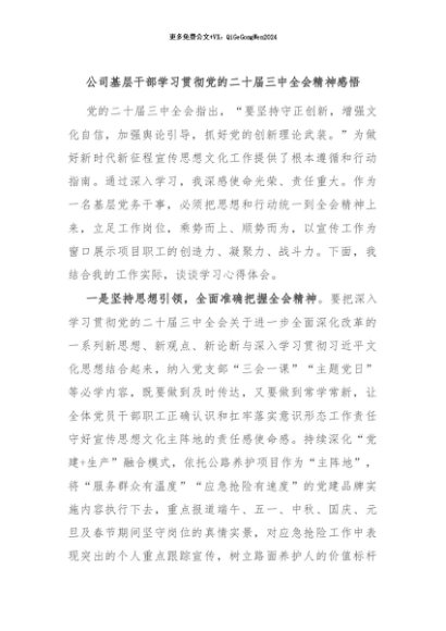 / 【七哥公文】2024年:公司基层干部学习贯彻党的二十届三中全会精神感悟+更多免费公文+VX:QiGeGongWen2024
