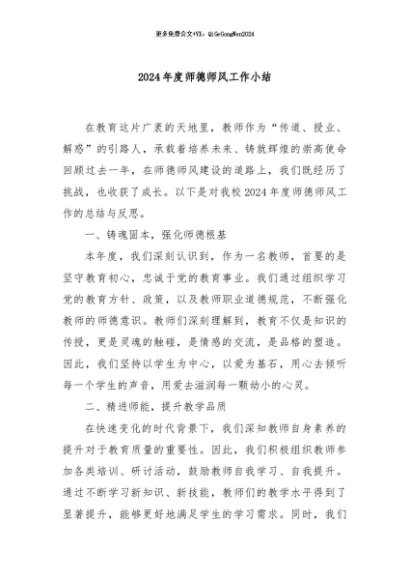 / 【七哥公文】2024年:2024年度师德师风工作小结+更多免费公文+VX:QiGeGongWen2024