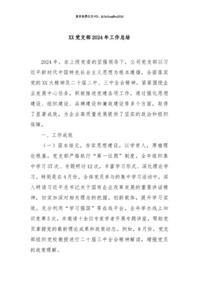 / 【七哥公文】2024年:XX党支部2024年工作总结+更多免费公文+VX:QiGeGongWen2024