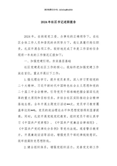 / 【七哥公文】2024年:2024年社区书记述职报告+更多免费公文+VX:QiGeGongWen2024