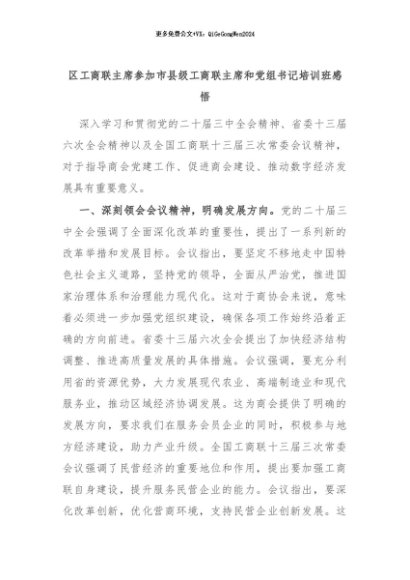 【七哥公文】2024年:区工商联主席参加市县级工商联主席和党组书记培训班感悟+更多免费公文+VX:QiGeGongWen2024