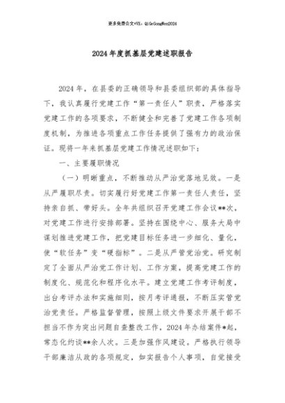 / 【七哥公文】2024年:2024年度抓基层党建述职报告+更多免费公文+VX:QiGeGongWen2024