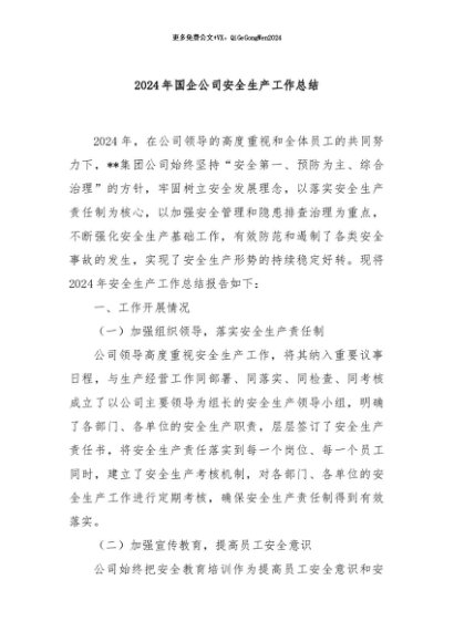 / 【七哥公文】2024年:2024年国企公司安全生产工作总结+更多免费公文+VX:QiGeGongWen2024