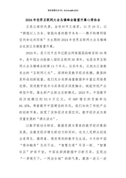 / 【七哥公文】2024年:2024年世界互联网大会乌镇峰会隆重开幕心得体会+更多免费公文+VX:QiGeGongWen2024