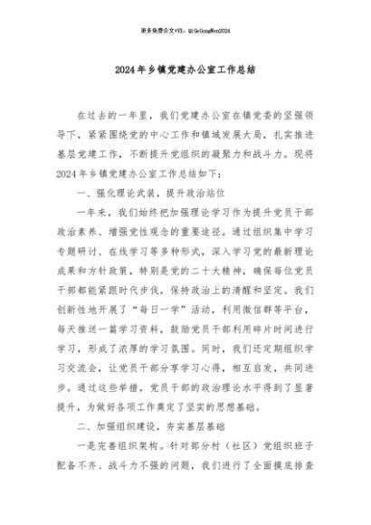 / 【七哥公文】2024年:2024年乡镇党建办公室工作总结 (1)+更多免费公文+VX:QiGeGongWen2024
