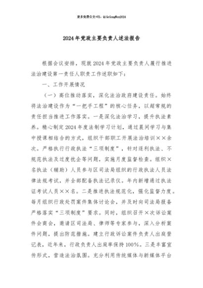 / 【七哥公文】2024年:2024年党政主要负责人述法报告+更多免费公文+VX:QiGeGongWen2024