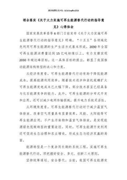【七哥公文】2024年:领会落实《关于大力实施可再生能源替代行动的指导意见》心得体会+更多免费公文+VX:QiGeGongWen2024