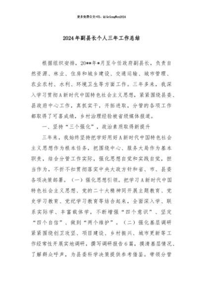 / 【七哥公文】2024年:2024年副县长个人三年工作总结+更多免费公文+VX:QiGeGongWen2024