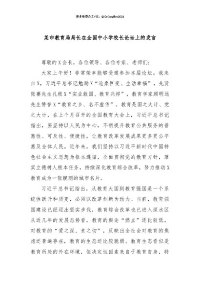 / 【七哥公文】2024年:某市教育局局长在全国中小学校长论坛上的发言+更多免费公文+VX:QiGeGongWen2024