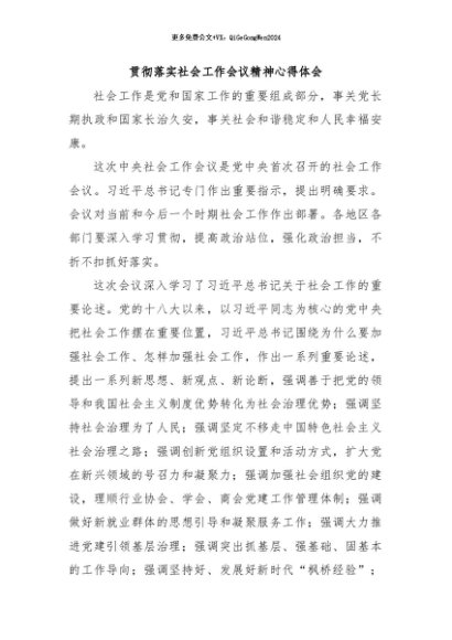 【七哥公文】2024年:贯彻落实社会工作会议精神心得体会+更多免费公文+VX:QiGeGongWen2024