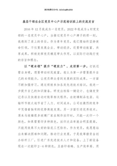 / 【七哥公文】2024年:基层干部在全区党员中心户示范培训班上的交流发言+更多免费公文+VX:QiGeGongWen2024