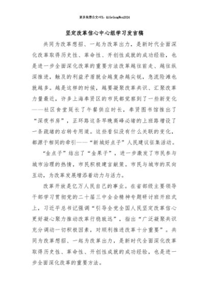 / 【七哥公文】2024年:坚定改革信心中心组学习发言稿+更多免费公文+VX:QiGeGongWen2024