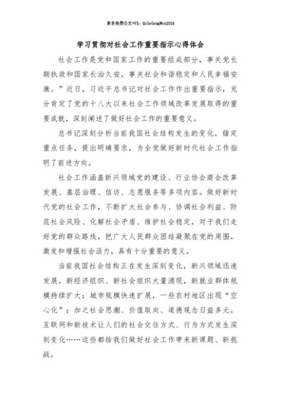 / 【七哥公文】2024年:学习贯彻对社会工作重要指示心得体会+更多免费公文+VX:QiGeGongWen2024