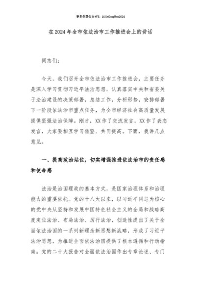 / 【七哥公文】2024年:在2024年全市依法治市工作推进会上的讲话+更多免费公文+VX:QiGeGongWen2024
