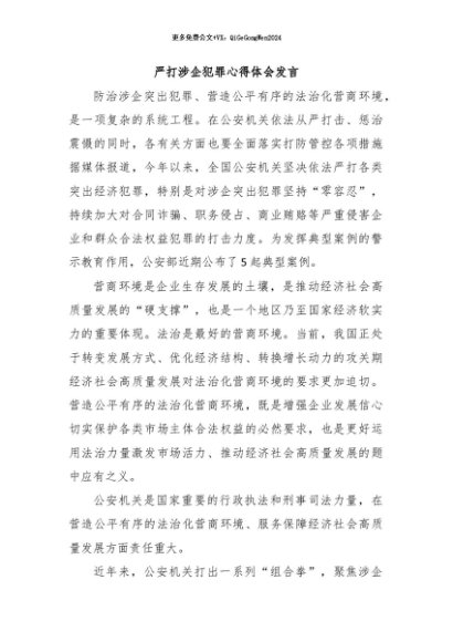 / 【七哥公文】2024年:严打涉企犯罪心得体会发言+更多免费公文+VX:QiGeGongWen2024