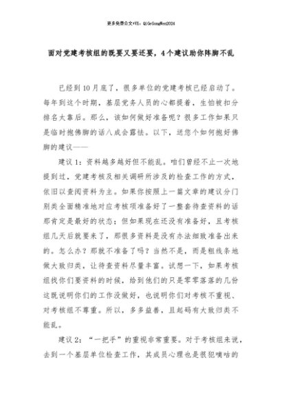 【七哥公文】2024年:面对党建考核组的既要又要还要,4个建议助你阵脚不乱+更多免费公文+VX:QiGeGongWen2024
