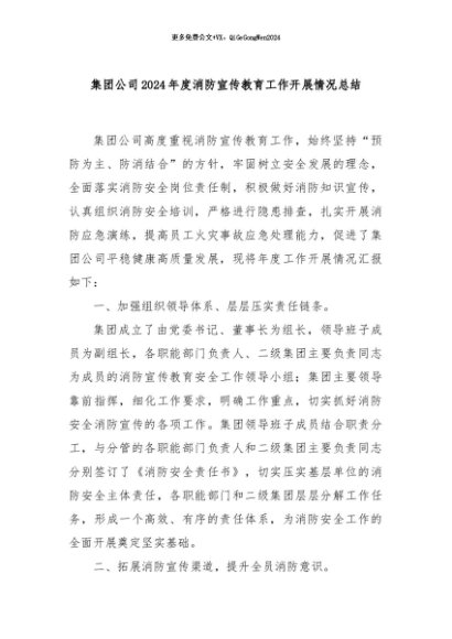 / 【七哥公文】2024年:集团公司2024年度消防宣传教育工作开展情况总结+更多免费公文+VX:QiGeGongWen2024