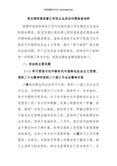 / 【七哥公文】2024年:党支部巡视巡察工作民主生活会对照检查材料+更多免费公文+VX:QiGeGongWen2024