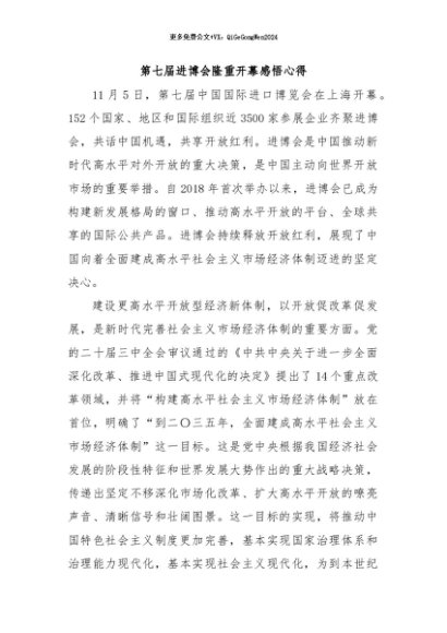 【七哥公文】2024年:第七届进博会隆重开幕感悟心得+更多免费公文+VX:QiGeGongWen2024