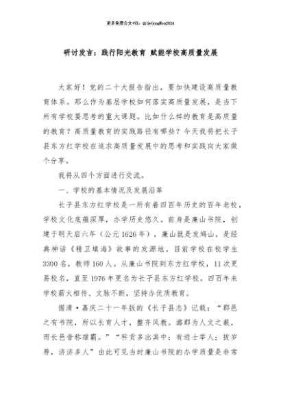 / 【七哥公文】2024年:研讨发言:践行阳光教育 赋能学校高质量发展+更多免费公文+VX:QiGeGongWen2024