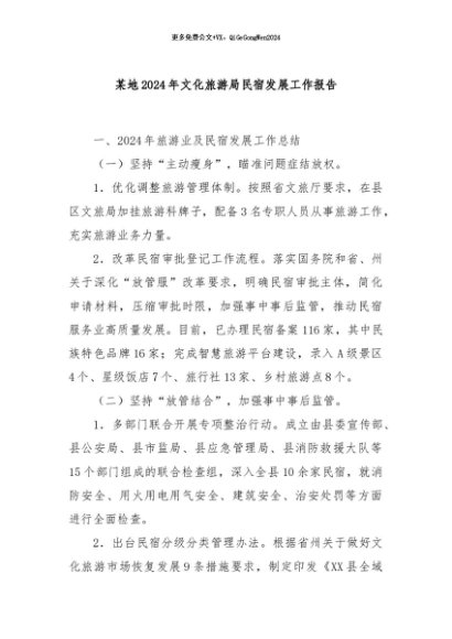 / 【七哥公文】2024年:某地2024年文化旅游局民宿发展工作报告+更多免费公文+VX:QiGeGongWen2024