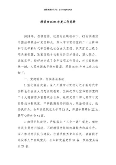 / 【七哥公文】2024年:村委会2024年度工作总结+更多免费公文+VX:QiGeGongWen2024