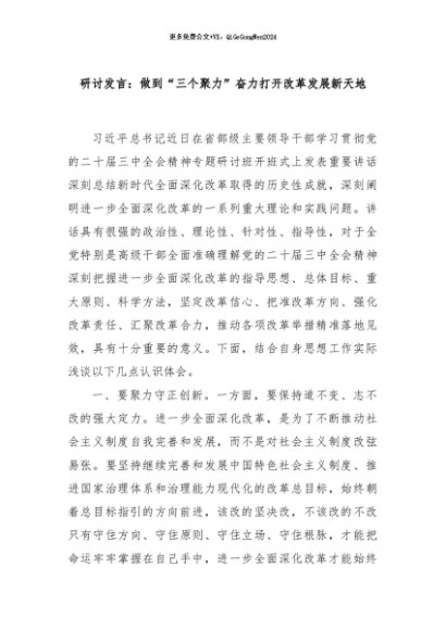 / 【七哥公文】2024年:研讨发言:做到“三个聚力”奋力打开改革发展新天地+更多免费公文+VX:QiGeGongWen2024