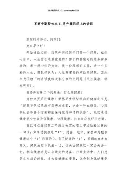 / 【七哥公文】2024年:某高中副校长在11月升旗活动上的讲话+更多免费公文+VX:QiGeGongWen2024