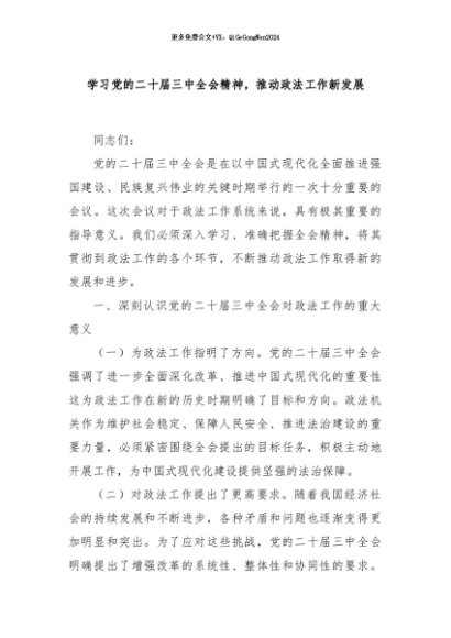 【七哥公文】2024年:学习党的二十届三中全会精神,推动政法工作新发展+更多免费公文+VX:QiGeGongWen2024