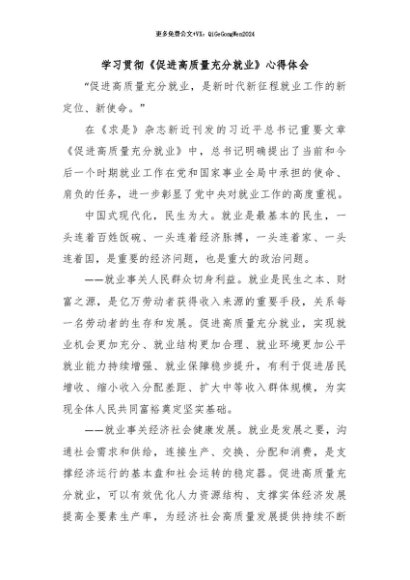 / 【七哥公文】2024年:学习贯彻《促进高质量充分就业》心得体会+更多免费公文+VX:QiGeGongWen2024