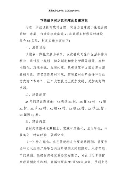 / 【七哥公文】2024年:市美丽乡村示范村建设实施方案+更多免费公文+VX:QiGeGongWen2024