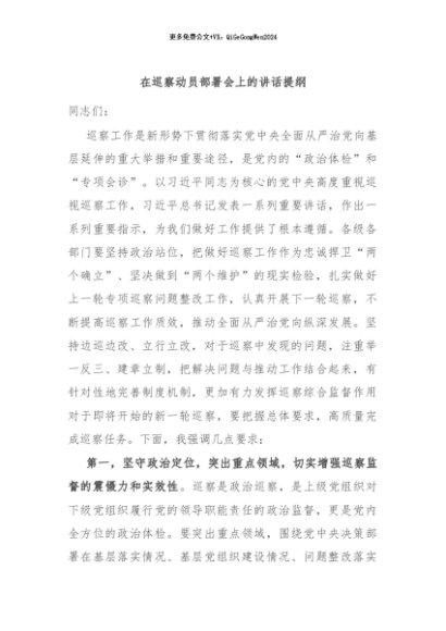 / 【七哥公文】2024年:在巡察动员部署会上的讲话提纲+更多免费公文+VX:QiGeGongWen2024