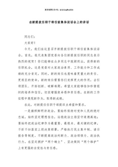 / 【七哥公文】2024年:在新提拔任职干部任前集体谈话会上的讲话+更多免费公文+VX:QiGeGongWen2024