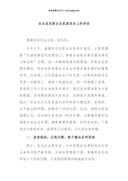 / 【七哥公文】2024年:在全县民营企业家座谈会上的讲话+更多免费公文+VX:QiGeGongWen2024