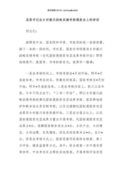 / 【七哥公文】2024年:县委书记在乡村振兴战略实绩考核调度会上的讲话+更多免费公文+VX:QiGeGongWen2024