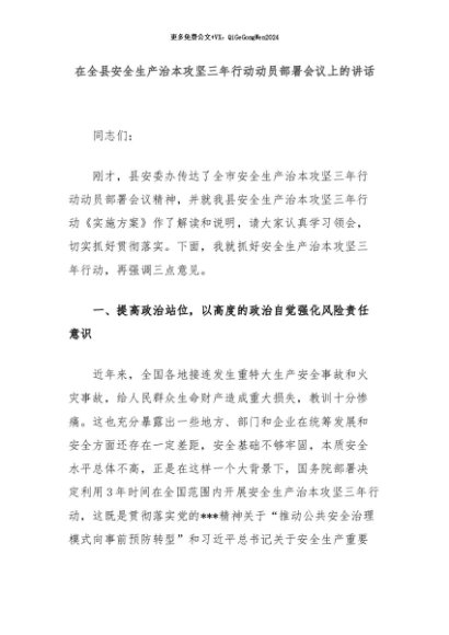 【七哥公文】2024年:在全县安全生产治本攻坚三年行动动员部署会议上的讲话+更多免费公文+VX:QiGeGongWen2024