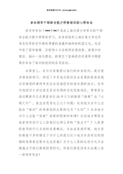 / 【七哥公文】2024年:参加领导干部综合能力研修培训班心得体会+更多免费公文+VX:QiGeGongWen2024