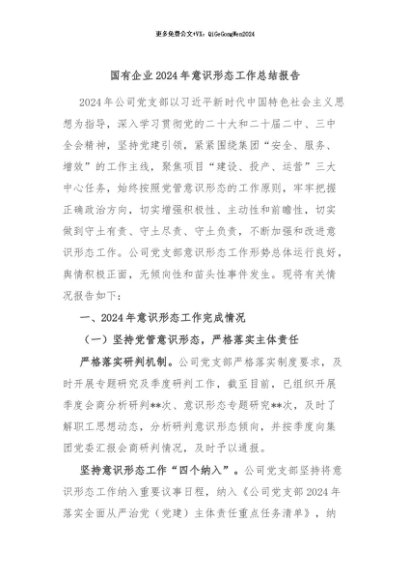/ 【七哥公文】2024年:国有企业2024年意识形态工作总结报告+更多免费公文+VX:QiGeGongWen2024