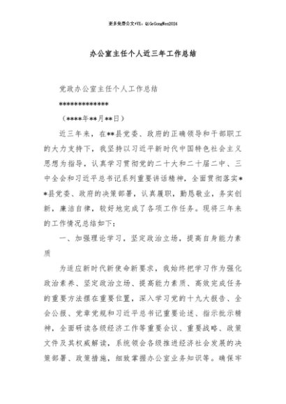 / 【七哥公文】2024年:办公室主任个人近三年工作总结+更多免费公文+VX:QiGeGongWen2024