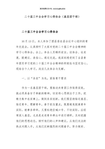 / 【七哥公文】2024年:二十届三中全会学习心得体会(基层团干部)+更多免费公文+VX:QiGeGongWen2024