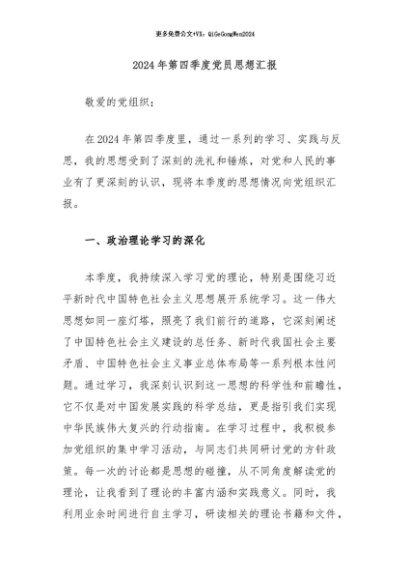 / 【七哥公文】2024年:2024年第四季度党员思想汇报+更多免费公文+VX:QiGeGongWen2024