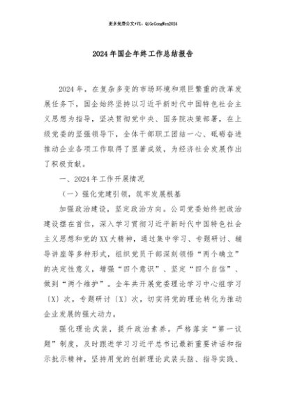 / 【七哥公文】2024年:2024年国企年终工作总结报告+更多免费公文+VX:QiGeGongWen2024