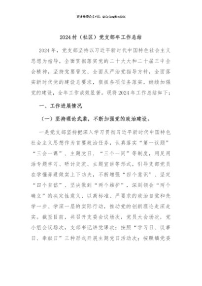 / 【七哥公文】2024年:2024村(社区)党支部年工作总结+更多免费公文+VX:QiGeGongWen2024