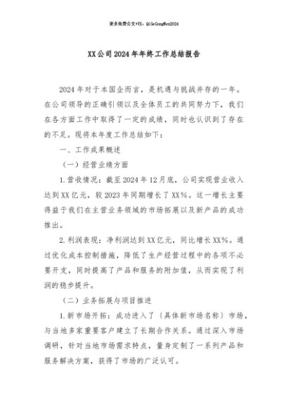 / 【七哥公文】2024年:XX公司2024年年终工作总结报告+更多免费公文+VX:QiGeGongWen2024
