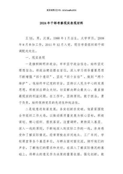 / 【七哥公文】2024年:2024年干部考察现实表现材料+更多免费公文+VX:QiGeGongWen2024